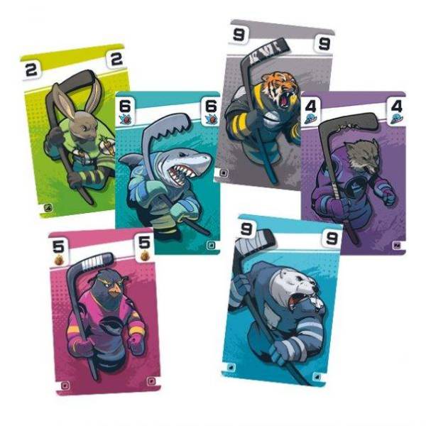 22 juillet 2025Jeu de draft (mais non ?!😅) où il faut construire une équipe de hockey en essayant de combiner les mêmes chiffres, ou mêmes animaux ou mêmes symboles. Mais les symboles sont plus fort que les chiffres eux mêmes plus fort que les animaux. Et à l'intérieur de chaque catégorie, il y a aussi une hiérarchie. Donc au départ, on draft pour faire une équipe et essayer de faire la meilleur combinaison de 5 cartes si possible, sinon de 4/3/2/1. Puis un second tours pour faire 2 équipes. Un dernier pour faire 3 équipes. Chaque équipe est envoyé sur des stades différents, aux scoring variés (parfois mieux vaut faire une équipe moyenne pour avoir les meilleurs points). Et en fin de partie on récupère toutes nos cartes pour faire différentes équipes (en gros, car par écrit pas simple de faire clair 🫨) Au début on se dit "mais où on va ?" Puis finalement on apprécie le voyage et on est prêt à recommencer. Il faut réussir à anticiper la fin de partie dans nos choix du début lors des différents draft.