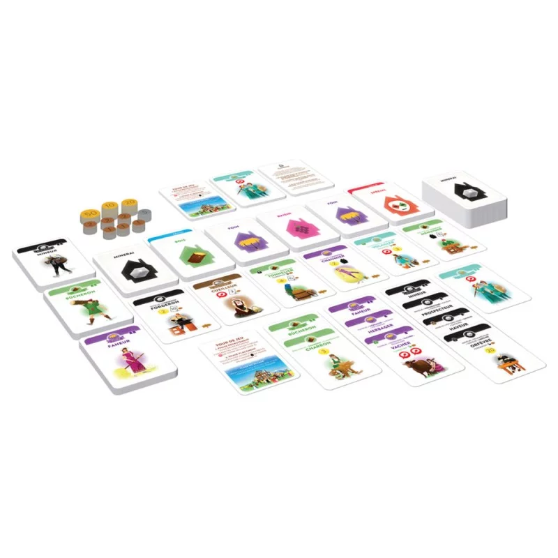 31 décembre 2024Ce jeu est presque passé inaperçu et c'est plutôt dommage. On draft ses cartes puis on construit son village en les posant mais uniquement si on a les cartes "mère" précédentes. Ex : je peux poser le menuisier si j'ai d'abord posé le bucheron. C'est un jeu entièrement basé sur un système de chaînage et je ne connais pas d'autres jeux uniquement basé là dessus. On notera toutefois une localisation un peu trop rapide avec des erreurs assez gênantes pour jouer, sur les cartes. Et des règles pas très bien écrites et organisées. D'où le 3 étoiles. Sinon j'aurais mis 4, pour le jeu en lui même.