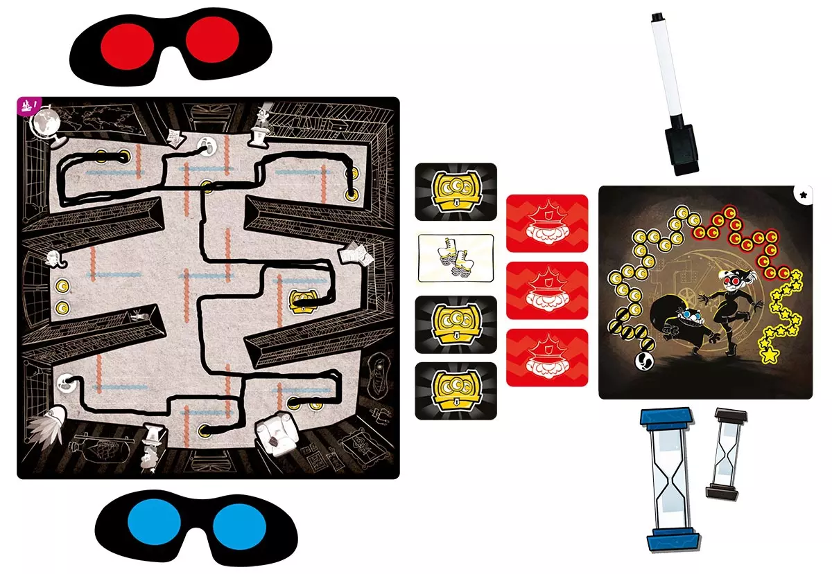 Le joueur avec les lunettes rouge doit alors tracer avec le feutre un chemin dans la salle afin de récupérer les pièces, tandis que le joueur avec les lunettes bleu est son guide. À eux de communiquer au mieux pour éviter les obstacles !