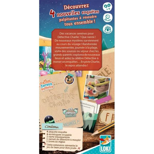 18 février 2025Cette extension du classique Détective Charlie est parfaitement à la hauteur du jeu de base. Encore un peu plus complexe et variée, elle est la suite logique à ce jeu d'enquêtes de référence pour les enfants de 7 ans.