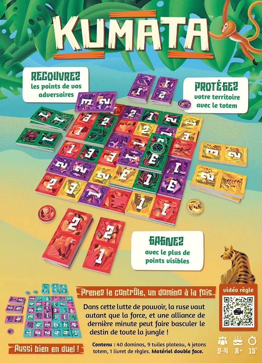 16 mars 2026- Un jeu rapide et très visuel qui s’explique en quelques minutes. – Le placement des dominos qui demande d’anticiper les possibilités des autres. – Le totem qui sert de protection, il faut le placer au bon moment. - La direction artistique très jolie. - Efficace quelque soit la configuration.