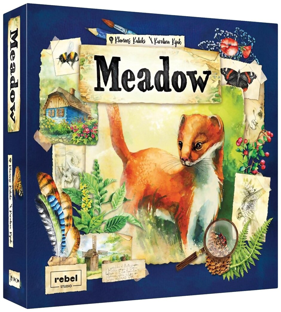 19 août 2024On aime beaucoup Meadow. Déjà, la direction graphique : de belles illustrations aquarelles. On peut aussi en apprendre davantage sur la nature européenne : insectes, animaux... Très bonne idée de rajouter une mini encyclopédie donnant des anecdotes sur chaque carte. La mécanique est simple et efficace. On a un nombre limité d'actions par manche, pour piocher des cartes sur une grande rivière et former son tableau, et cumuler des points en fin de parties. Les interactions se limitent à voler la carte utile avant un adversaire, ou à bloquer une partie de la rivière. À noter, l'existence de 2 extensions : Au fil de l'eau, avec une thématique du milieu humide et des cours d'eau. Et la nouveauté 2024, avec un mode campagne et aventures. Chaque aventure proposant de nouvelles règles et modules pour faire varier le jeu original. Un très bon jeu familial.