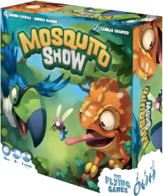 Mosquito Show est un jeu tactique à deux joueurs, chacun contrôlant un toucan et un caméléon. Le plateau de jeu est une grille de 4x4, avec une pile de trois jetons moustiques placés aux neuf intersections internes de cette grille.