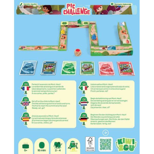 15 juillet 2025Pic Challenge est un petit jeu de course parfaitement adapté à TOUS les enfants dès 5 ans. Joueurs ou non, ils prendront plaisir à retrouver le concept familier du jeu de l'oie mais bien plus stratégique avec une main de cartes qui remplace le dé pour avancer. Rapide, universel et amusant, c'est un jeu complètement validé ici.