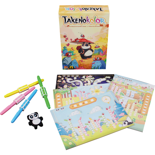 2 octobre 2024Un roll and write classique avec une désignation des symboles originale mais peu fonctionnelle qui ne nous a pas séduits. Takenokolor est principalement accessible pour un public familial avec de jeunes enfants sans pour autant réussir à totalement emballer les parents. Déçue ! En fin de compte, Takenokolor est comme ce panda qui essaie de faire du roller : c’est mignon, ça fait sourire, mais ça ne va pas très loin.