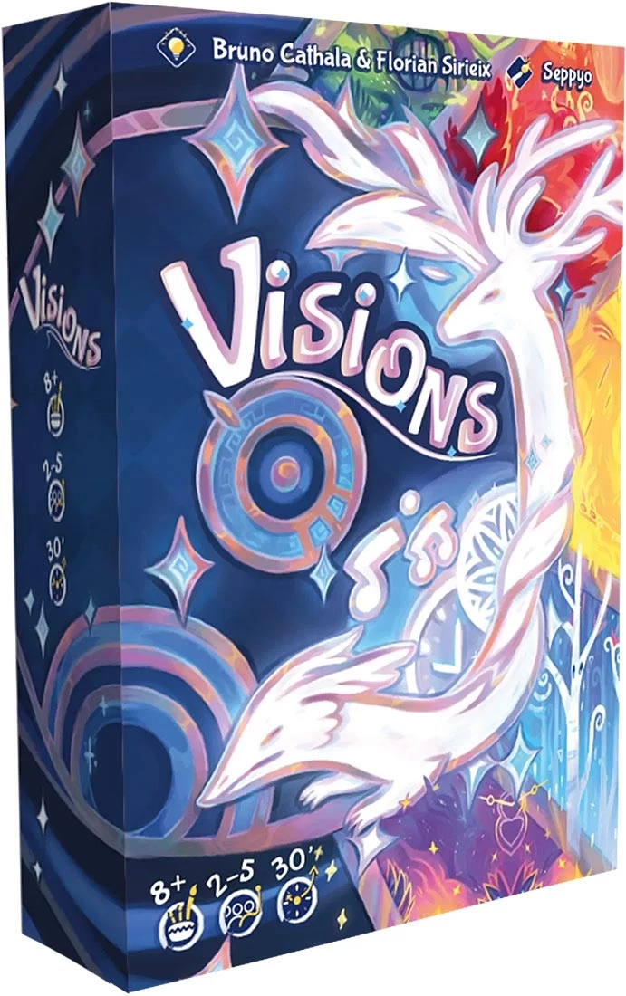15 mars 2026Qu’elles sont jolies ces cartes à relief aux couleurs délicieusement acidulées ! Avec ses illustrations lumineuses et son univers onirique, Visions promet un petit voyage tout en douceur où l’on collectionne des cartes et active quelques effets pour booster son score. Le jeu est agréable, sans être véritablement palpitant. La part de hasard y est assez présente, notamment à cause de la rivière de cartes qui s’assèche très vite. De mon côté, je l’ai un peu subie : à chaque tour, ou presque, il ne restait plus qu’une seule carte quand venait mon tour de jouer… difficile dans ces conditions d’avoir vraiment le choix ! Heureusement, les parties sont très courtes, ce qui ne laisse pas le temps de s’ennuyer. On tente donc simplement de faire le meilleur choix possible parmi ses trois cartes. Mais le vrai plaisir vient surtout des cartes elles-mêmes : les incliner pour faire briller leurs reliefs et révéler les illustrations est clairement le moment le plus fun de la partie Au final, Visions séduira surtout un public occasionnel ou non joueur, sensible à son esthétique et à sa prise en main immédiate.